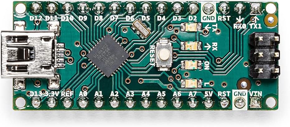 Compact and Powerful – The Arduino Nano [A000005] is a small yet powerful microcontroller based on the ATmega328P, making it perfect for projects with limited space. Its compact design allows for easy integration into embedded systems, wearables, and portable applications without compromising performance. Versatile I/O Options – Equipped with 14 digital I/O pins, 8 analog inputs, and PWM support, the Nano enables precise control of components such as sensors, motors, and LEDs. This versatility makes it ideal for robotics, automation, and interactive projects requiring multiple inputs and outputs. Easy USB Connectivity – The built-in mini-USB port allows quick and hassle-free programming, as well as power supply without additional components. It simplifies prototyping and development, making it easy to upload sketches, communicate with the board, and integrate with other devices. Arduino IDE Compatibility – Fully compatible with the Arduino IDE, the Nano supports a vast library of pre-written code, examples, and community projects. This makes it accessible for beginners while offering advanced users the flexibility to develop custom applications with ease. Ideal for Prototyping & IoT – Perfect for makers, students, and engineers, the Arduino Nano is widely used in IoT applications, robotics, and embedded systems. Its small size and powerful features make it a great choice for prototyping, experimentation, and building compact, high-performance devices.