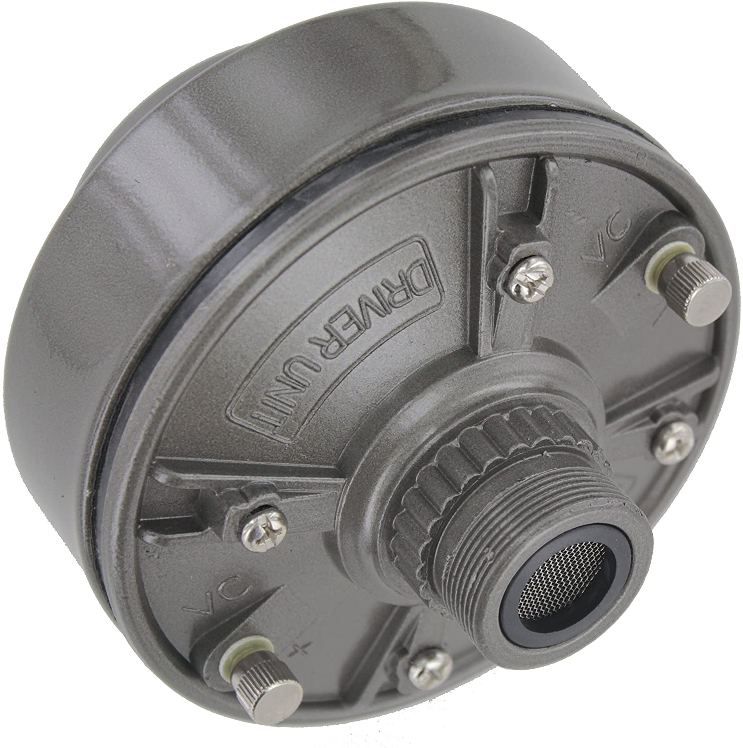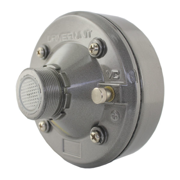 100 Watts 16 ohms Speaker Compression Driver Unit – 160Hz – 8KHz Frequency, Mid Range Tweeter Unit with Aluminum Body, High Temperature Voice Coil and Neodymium Diaphragm Screw on Type. * 100 Watts Peak Power Handling – Sensitivity (1w/1m): 115dB * Mid-range / Tweeter Driver Unit – 1.5” (35mm) Flat Aluminum Voice Coil – Neodymium * Diaphragm * Fits Horns with 1 3/8″ x 18 TPI Threads * Frequency response: 160Hz-8KHz, 16 Ohm Impedance