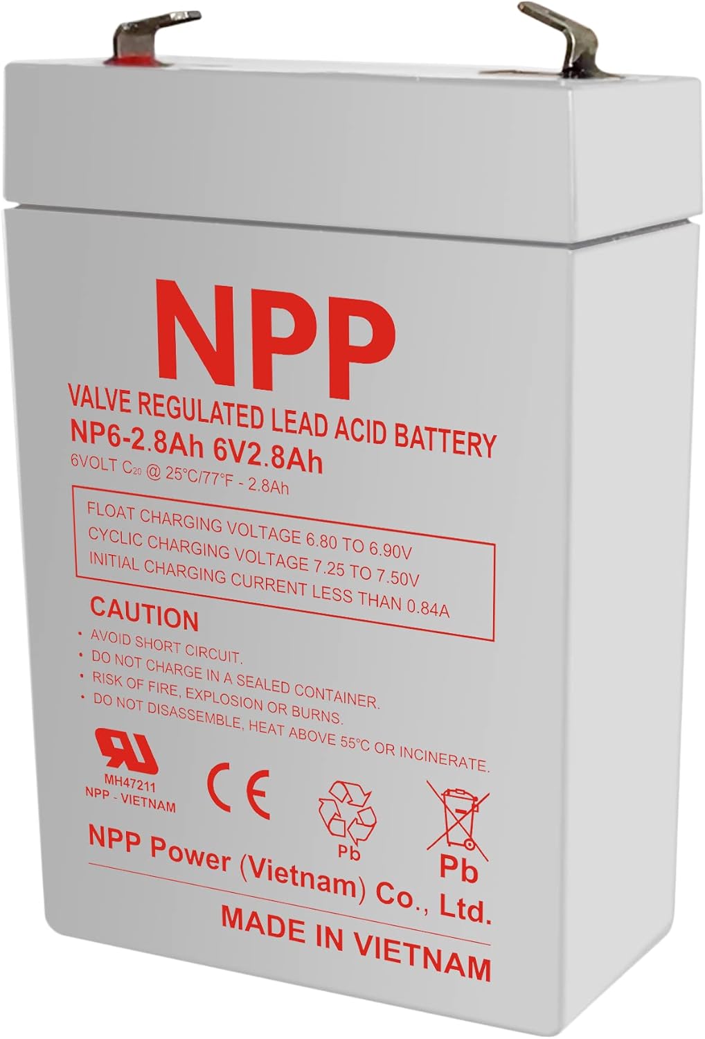NPP NP6-2.8Ah 6V Rechargeable AGM Battery, 6 Volt 2.8Ah Small Sealed Lead Acid Battery for Attendance Machine, Security Alarm System and Mini Instrument Replace PS-628 SLA0895 CB628P