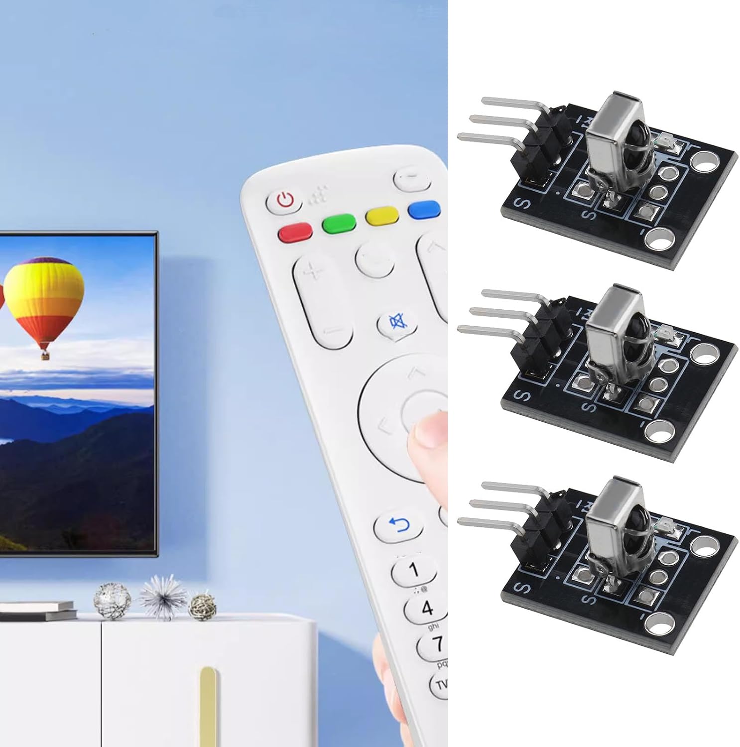 Widely applicable: Widely used in stereo, TV, video machine, disc machine, set-top boxes, digital photo frame, car stereo, remote control toys, satellite receivers, hard disk player, air conditioner, heater, electric fan, lighting and other home appliances. Working voltage: 2.7 ~ 5.5V Frequency: 37.9KHz Receiving angle: 90° Receiving range: 18m? Dimension (each?: 1.5 x 1.8 x 1cm Infrared receiving module adopts 1838 infrared receiving head Can receive infrared signals and output them at the signal output as a digital sequence. You will receive 10 IR receiver modules for your use. built-in infrared dedicated IC, can work under 500 lux light intensity.