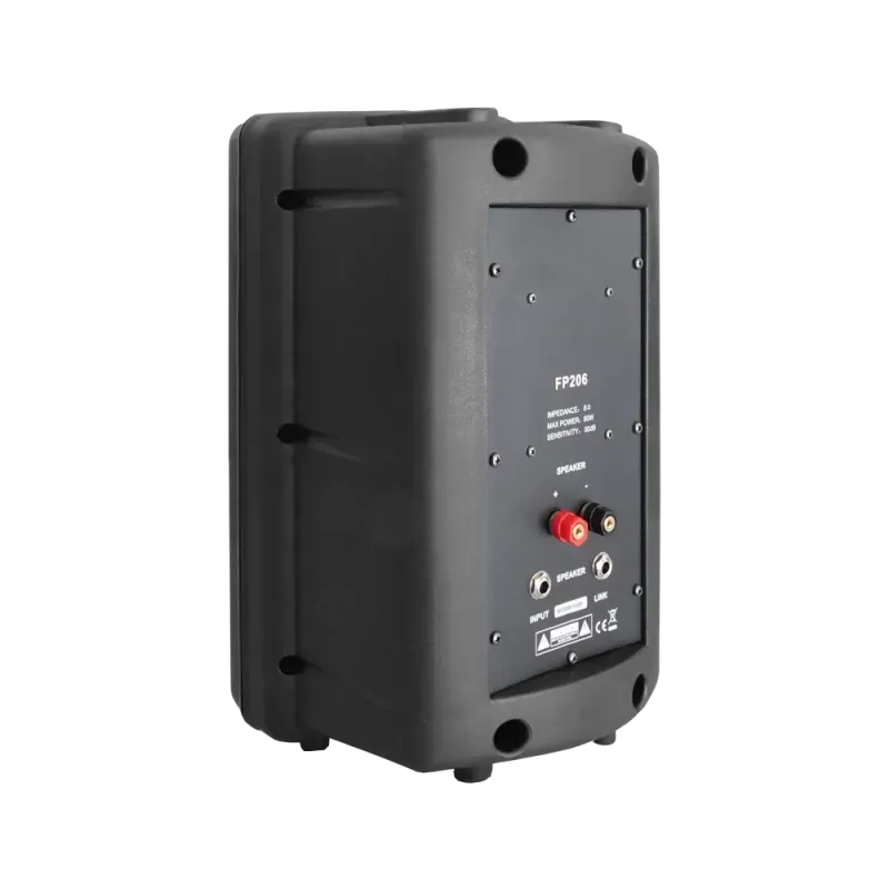Housing FP-206 speaker system is made of durable polypropylene. The front panel is completely covered with metal bars, protecting not only the subwoofer, but also high-frequency transmitter. Complete wall mount provides a simple and convenient installation. Soundking FP-206 - the perfect choice for use in shopping malls, cafes, restaurants, schools, etc. Features: Description: 2-way passive speaker Power: 40 W Components: two 6.5-inch woofers, 1-inch HF tweeter Frequency response: 80 Hz - 20 kHz Sensitivity: 91 dB Nominal Impedance: 8 ohms Mmaximum sound pressure level ( SPL): 127 dB Connectors: 1/4 Jack, 2 screw pin Dimensions: 360 x 200 x 232 mm Weight: 3.2 kg Manufacture: China