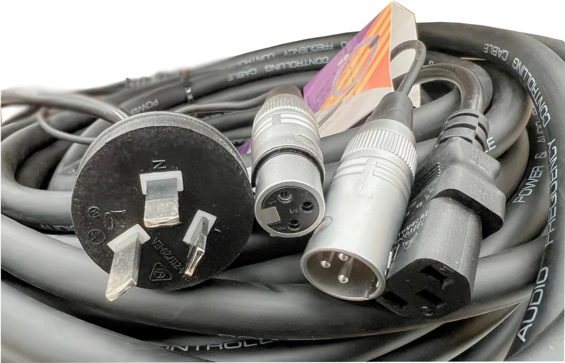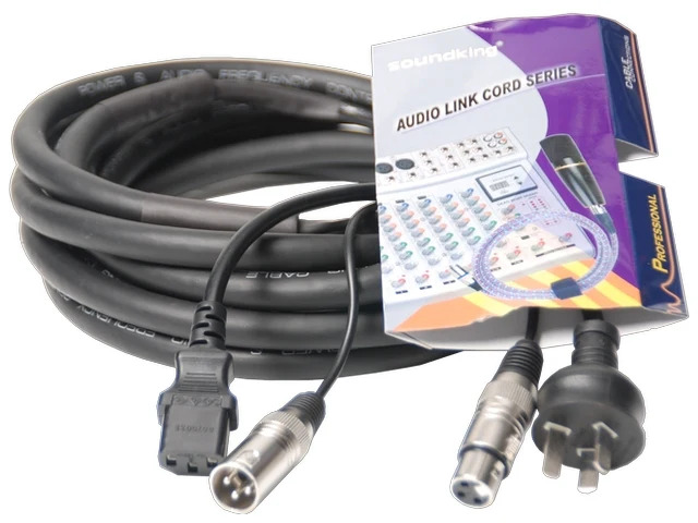 SoundKing Power and Signal Lead Combo 5 Metre Audio Signal Cable and Power Lead Power Lead (10A) and Signal Cable Combo (5m): XLR 3pin connection. * Power lead: 5m 10A * Connection: 3-pin XLR * Lead: 10m