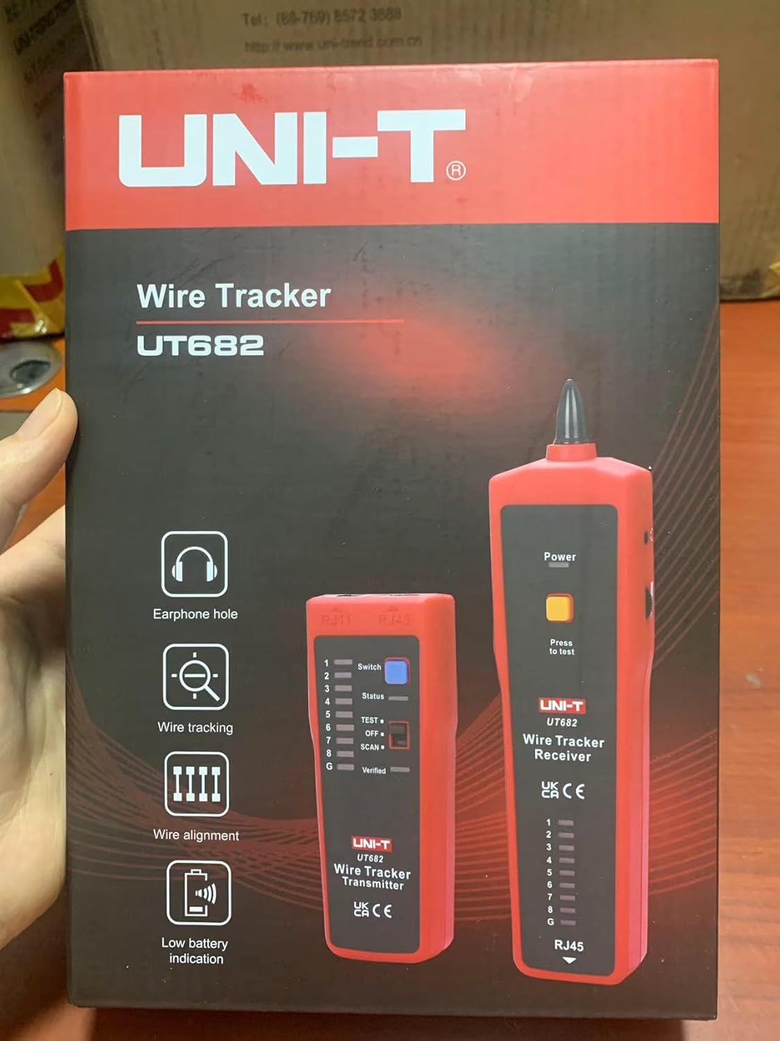 UT682 Series Wire Tracker/Tone and Probe Certifications: CE, UKCA ● Telephone/ethernet/power cable tracking ● DC level test, can check voltage level and polarity ● Ethernet cable wiring sequence verification ● Fast open/short circuit test ● Volume adjustment ● Headset connection for noisy environment ● Dual measurement cycle mode ● Low battery indication