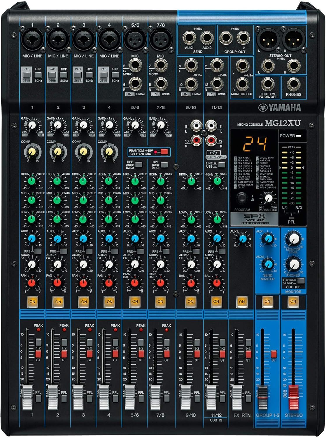 12-Channel mixer with USB and SPX digital effects Featuring studio-grade discrete class-A D-PRE preamps with inverted Darlington circuit - providing fat, natural sounding bass and smooth, soaring highs 3-band EQ and high-pass filters give you maximum control and eliminate unwanted noise, resulting in a cleaner mix 1-Knob compressors allow easy control - resulting in livelier guitars, punchier bass lines, a tighter snare and a cleaner vocal sound. MG Series mixers feature a rugged, impact-resistant, powder-coated metal chassis.Crosstalk:-78 dB